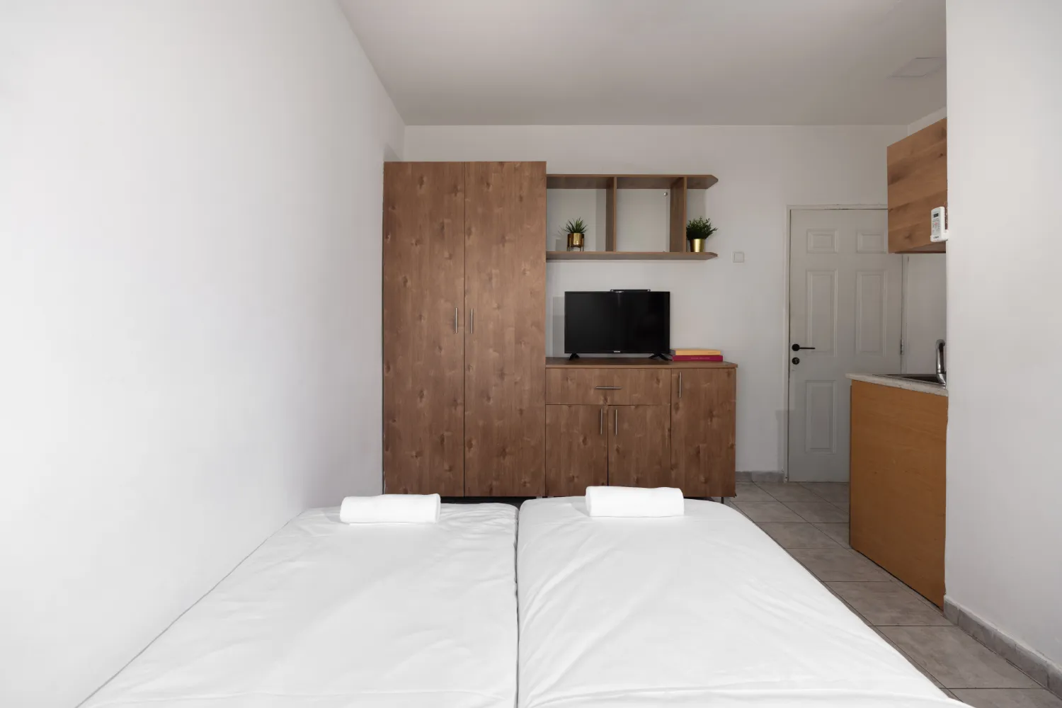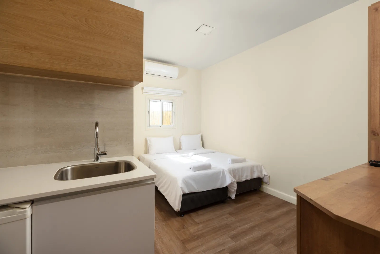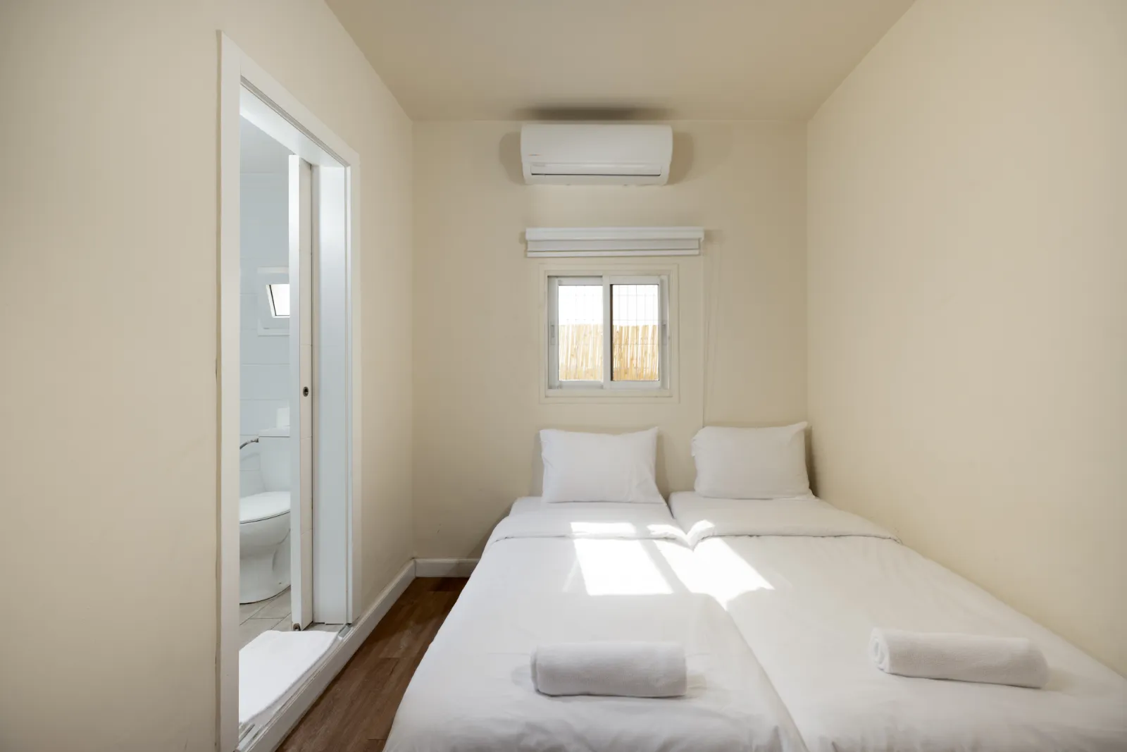 מתאימים לזוגות, חברים או אורחים בעבודה. כוללים: מטבחון מאובזר (מקרר, קומקום, כיור), מקלחת ושירותים פרטיים, מוצרי רחצה ומגבות, מזגן, טלוויזיה עם מגוון ערוצים, שתי מיטות יחיד, בחירה מצוינת למי שמחפש דירות באילת במחיר משתלם.