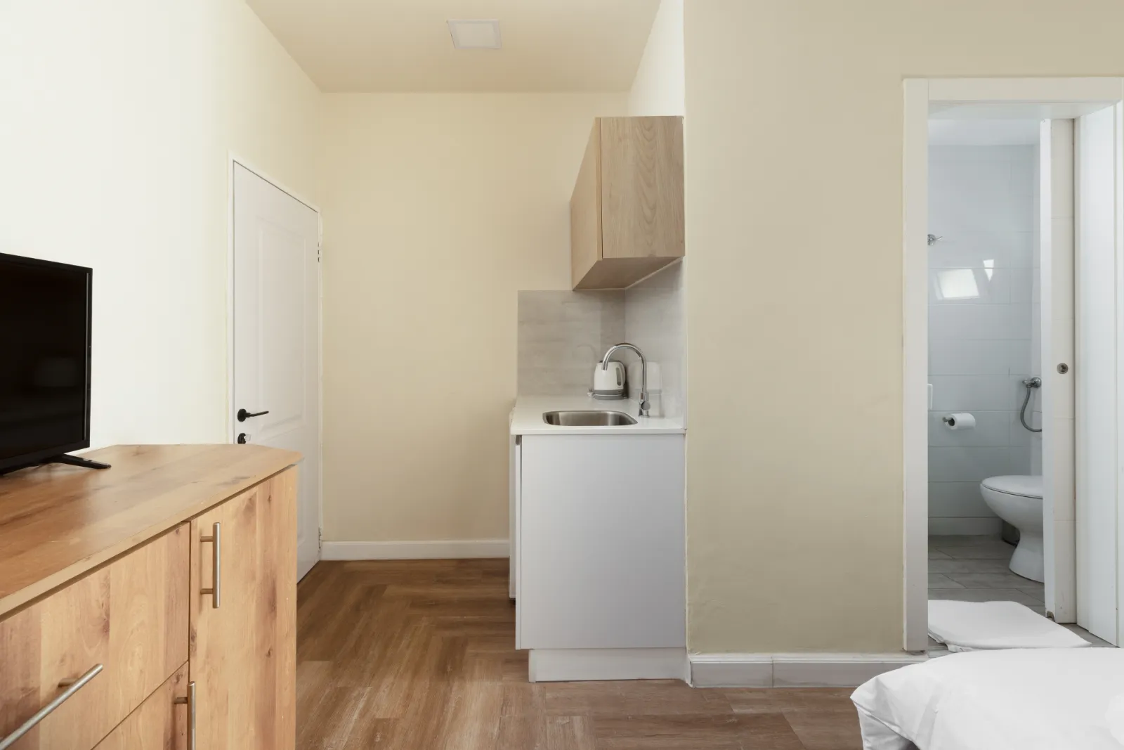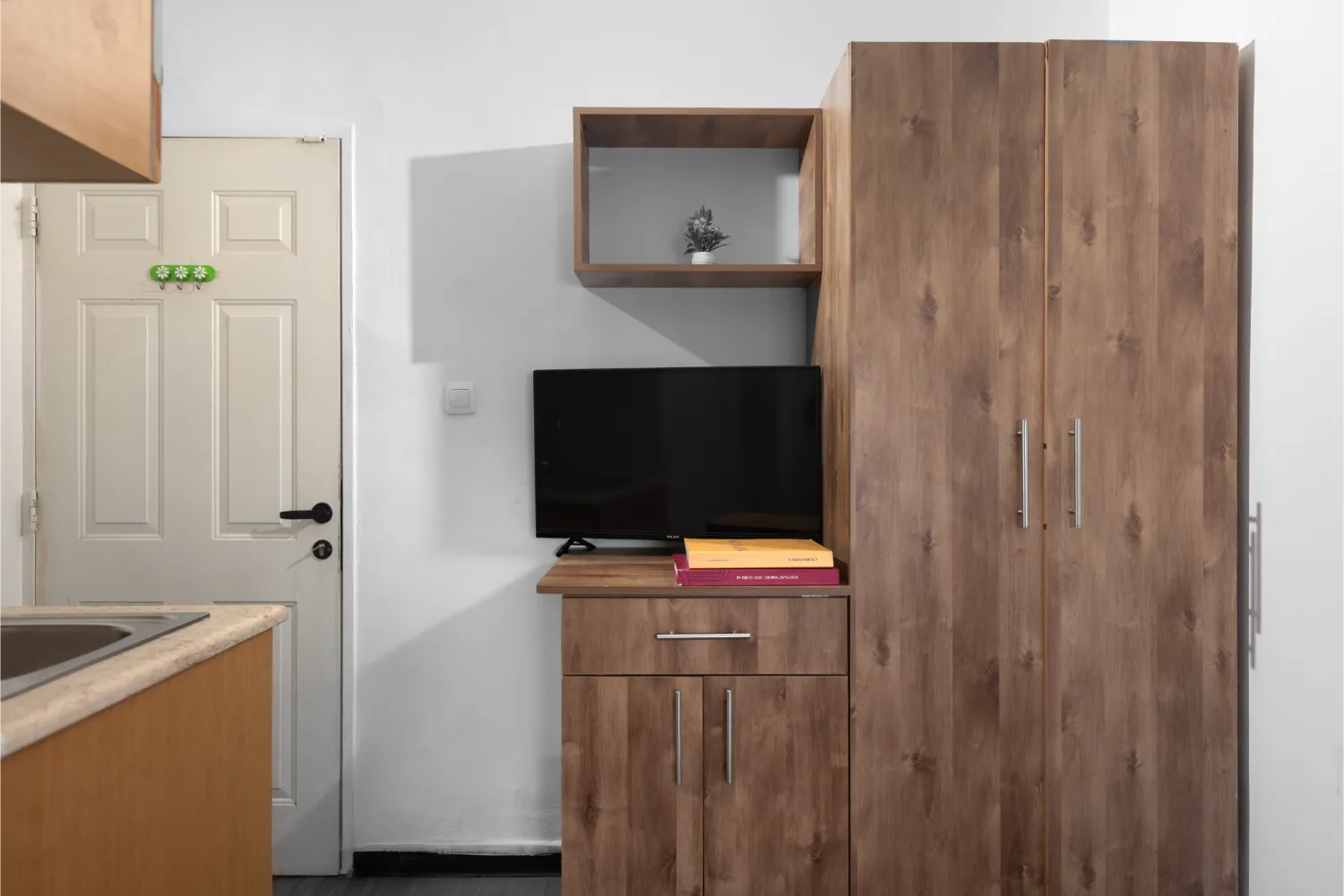 חדר קומפקטי, נעים וזול במיוחד. כולל: מטבחון עם מקרר, קומקום וכיור, מקלחת ושירותים פרטיים, סבונים, שמפו, מרכך, מגבות, טלוויזיה עם מגוון ערוצים, מזגן, מיטת יחיד אחת, מעולה למי שמחפש מקום לינה זול באילת ליחיד.